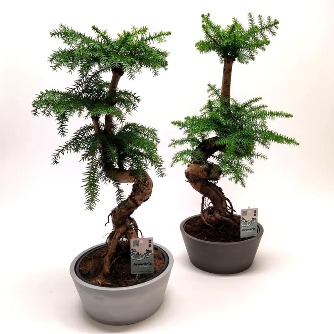 Araucaria Salon Çamı Bonsai, Araucaria Heter Excelsa türü bir çam ağacı bonsaidir. İğne yapraklı iç mekan çam bonsaisidir. Salon çamı veya araucaria ağacı olarak da bilinen bu tür dayanıklı ve bakımı kolay bir bonsaidir. Japon kültürüne özgü bonsai ağaçlarının tüm özelliklerini taşır. Onu ofis veya evinizde yetiştirebilir, yılbaşı için süsleyebilirsiniz. Noel ağacı olarak da yaygın olarak kullanıyor! Yılbaşı ağacınızı her yıl saklamanız için ekonomik bir alternatif…