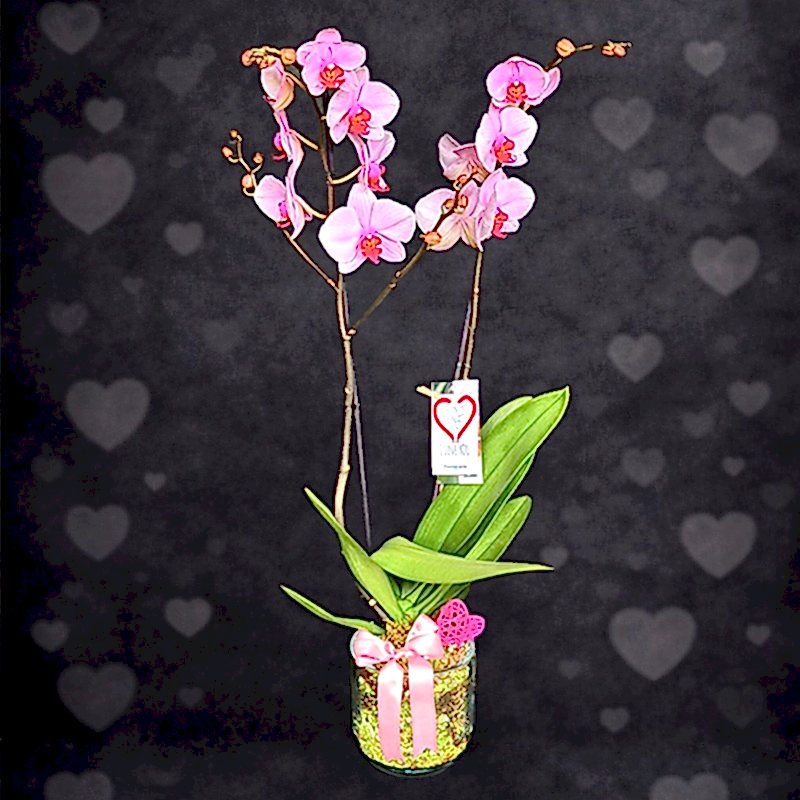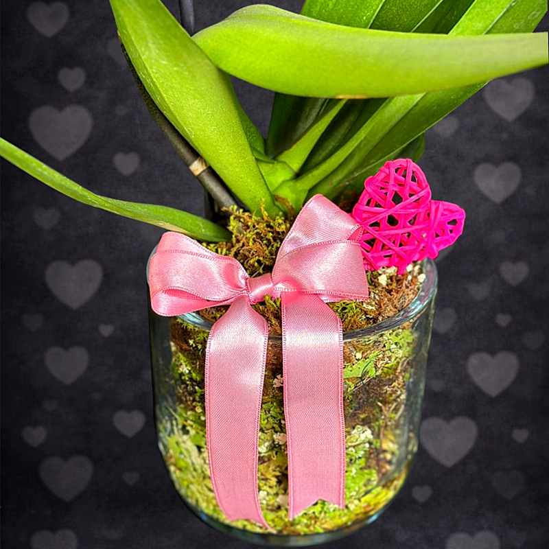 Cam Saksılı Orkide Aranjmanı (Çift Dal)